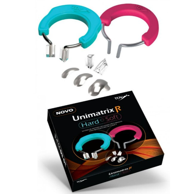 The Unimatrix R system is designed to optimize Class II restorations. Consisting of preformed matrices, reinforced rings and triangular silicone tips, it allows for much easier reconstruction of the contact points. The rings are reinforced for stability and strength.