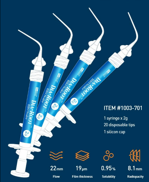 Dia-Root Bio Sealer is a pre-mixed bioceramic calcium silicate-based MTA sealer. Its non-shrinking feature and strong bonding ability make it the perfect sealer for permanent obturation and suitable for all obturation techniques with gutta-percha.